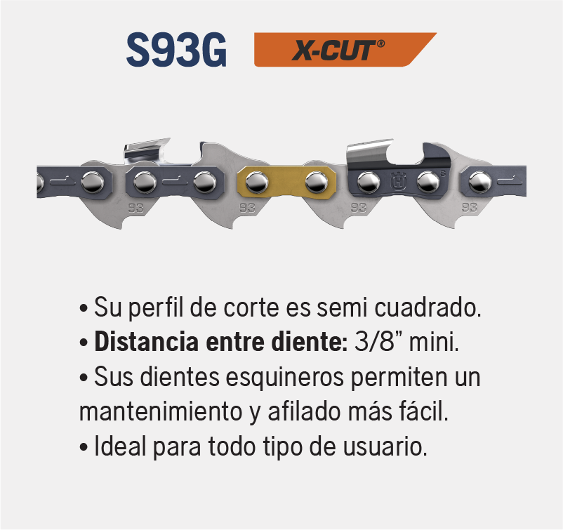 Un aspecto crucial para el rendimiento de cualquier cadena es su mantenimiento, estas cadenas han simplificado el proceso de afilado reduciendo el tiempo y esfuerzo, así el usuario obtiene una mayor productividad y menos interrupciones en el trabajo.